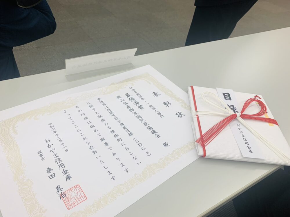 お知らせ 2025.12.18 おかやましんきんSDgsアワード2025 長谷井商店が事務局を担っている、岡山水産物流通促進協議会(会長:森下倫年)が、「おかやましんきんSDGsアワード2025」社会貢献団体・一般個人部門において最優秀賞を受賞いたしました。岡山水産物流通促進協議会は、岡山市場における低・未利用魚水産物の加工品開発及び消費拡大の取り組みを通じ、魚食普及に加え、岡山県が持つ豊かな水産物の食文化を発信することを目的に、令和元年(2019年)に設立されました。長谷井商店はこれからも様々が活動を通じて、地域の活性化に努めてまいります。